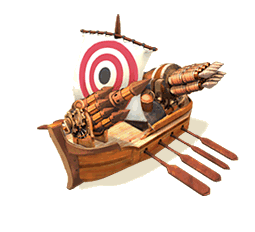 Graças às nossas pesquisas, os nossos cientistas conseguiram armazenar grandes quantidades de explosivos em caixas de madeira que podem ser lançadas a várias centenas de metros e causar enormes explosões ao atingir os barcos inimigos. Os inimigos devem ter medo - muito medo - desta arma letal!